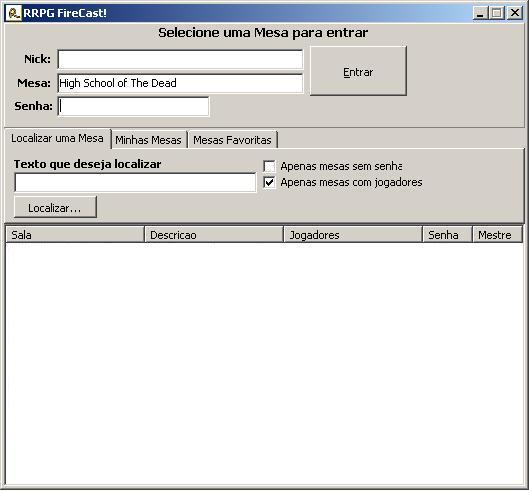 Após clicar nisso, uma outra janelinha irá aparecer, basta colocar o seu nick, o nome da mesa a senha dela e clicar em Entrar.